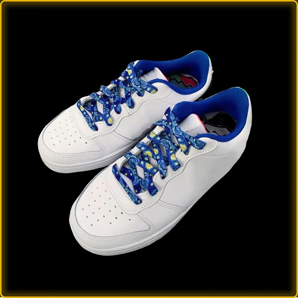 Crie um visual único com o Cadarço "Noite estrelada", inspirado na obra icônica de Van Gogh . Transforme seus sneakers em obras de arte e destaque-se com estilo. Desperte a criatividade e a personalidade em cada passo que você der.